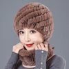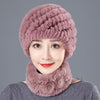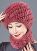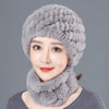 Winter Fur Rex Rabbit Fur Warm Scarf Hat Set