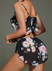 Chiffon Suspender Shorts Print Pajamas Suit