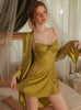 Satin Stitching Lace Backless Nightdress with Chest Pad
