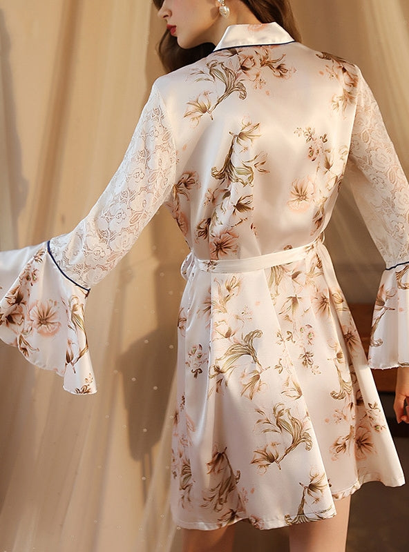 Sexy Bathrobe Satin Lace Nightgown
