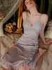 Sexy Pleated Slim Backless Ice Silk Nightgown