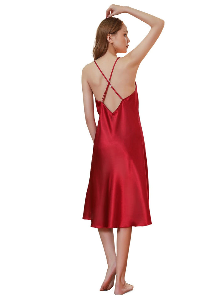 Feminine and sophisticated, this satin nightgown offers the perfect combination of elegance and comfort. The rich blue satin fabric drapes gracefully, creating a sleek and stylish silhouette that is both flattering and comfortable. The smooth texture of the satin feels delightful against your skin, providing a luxurious touch that enhances your sleep experience. This nightgown features adjustable spaghetti straps for a perfect fit, ensuring you feel supported and at ease. The bold thigh-high slit adds a touch of allure and sophistication, making this nightgown not only functional but also enticing. The flowing design allows for unrestricted movement, ensuring you stay comfortable throughout the night. Lightweight and breathable, this nightgown is perfect for warm nights, keeping you cool and comfortable. Whether you're winding down after a busy day or enjoying a lazy morning, this nightgown promises to make you feel pampered and stylish. Experience the ultimate in luxury and comfort with this exquisite satin nightgown.