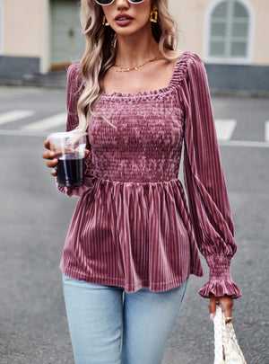 Velvet Long Sleeve Shirt Top