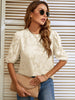 Chiffon Flower Round Neck Bubble Sleeve shirt