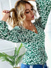 Floral Loose V-neck Lantern Sleeve Top