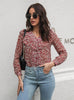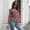 Lotus Leaf Floral V-neck Long-sleeved Chiffon Shirt