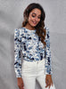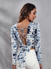 Tie-dyed Backless Bubble Sleeves Printed Top