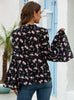 Trumpet Sleeves Printed Chiffon Shirt