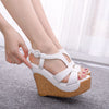 12 cm Wooden Grain Wedge Fishmouth Sandals