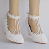 8 cm Pointed Wedge Lace Beaded Wedding Shoes