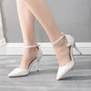 9.5cm White Lace Flower Thin Heels Bridal Shoes
