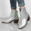 Embroidered Retro Thick Heel Knight Booties