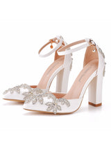 Elevate your formal look with these Rhinestone Ladies Shoes. These shoes feature a high square wedge heel, a pointed toe and heel adorned with hanging jewels and crystal rhinestones, and an ankle strap closure for a secure fit. The insole is made of PU for added comfort and the upper is crafted from high-quality PU material. With a true-to-size fit and a buckle strap closure, these shoes are the perfect addition to your formal attire. The rubber sole provides stability and durability, making these shoes not only fashionable but also functional.