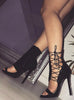 Lace Up Peep Toe Sandals High Heels Ankle Boots