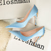 Metal Flower Pointed Satin Stiletto Wedding Shoes