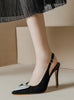 Pointed Heart-shaped Metal Rhinestone Stiletto Sandals