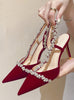 Pointed Rhinestone Sandals Red Wedding Shoes