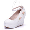 Round-headed Lace Flowers Wedding Shoes
