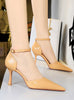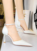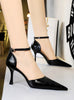 Stone Patent Leather Pointed High-heeled Sandals