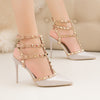 Thin High Heel Patent Leather Metal Rivet Sandals