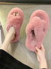 Women Fur Slippers Fashion Cross Band Warm Plush
