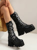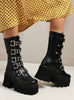Womens Platform Boots Black Buckle Strap Wedges Shoes