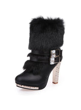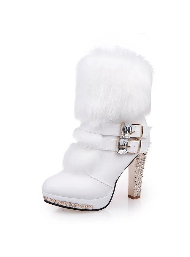 Introducing the High Heel Zipper Plush Snow Boots - a stylish and warm addition to your footwear collection. These boots feature a sleek pointed toe design, a convenient slip-on style, and a plush interior lining that provides ultimate comfort with every step. Available in classic solid colors, these boots can be dressed up or down, making them the perfect finishing touch to any outfit, whether it be for a casual day out, a night on the town, or a special occasion. Made with artificial leather and a sturdy rubber sole, these boots have a heel height of 10.5cm/4.13'' and are suitable for both indoor and outdoor wear. Elevate your style with the boots.