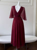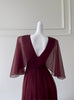 Burgundy Chiffon V-neck Pleats Prom Dress
