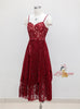 Burgundy Lace Spaghetti Straps Prom Dress
