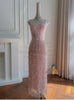 Pink Sequins Beading Straps Prom Dress