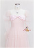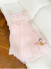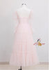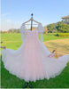 Pink Tulle Long Sleeve Pleats Pearls Prom Dress