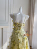 Yellow Tulle Print 3D Flower Prom Dress