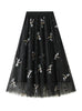 3D Embroidered Dragonflies Dotted Gauze Skirt