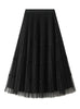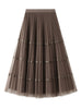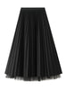 High Waist Lace Stitching Pleats on Both Sides of Mesh Skirt