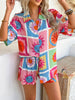 Bohemian Print Top Short Pants Suit