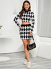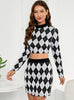High Rhombus Hip Skirt Long Sleeve Top Suit