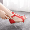 Beaded Thin Heel Fish Mouth Roman Sandals