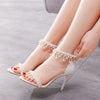 Beaded Thin Heel Fishmouth Sandals