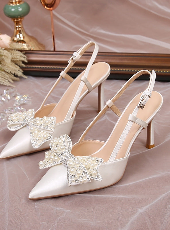 Bow Pearl Stiletto Heels Sandal