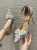 Fluorescent Rhinestone Stiletto Heel Pointed High Heels