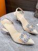Metal Rhinestone Pointed High Heels Sandals