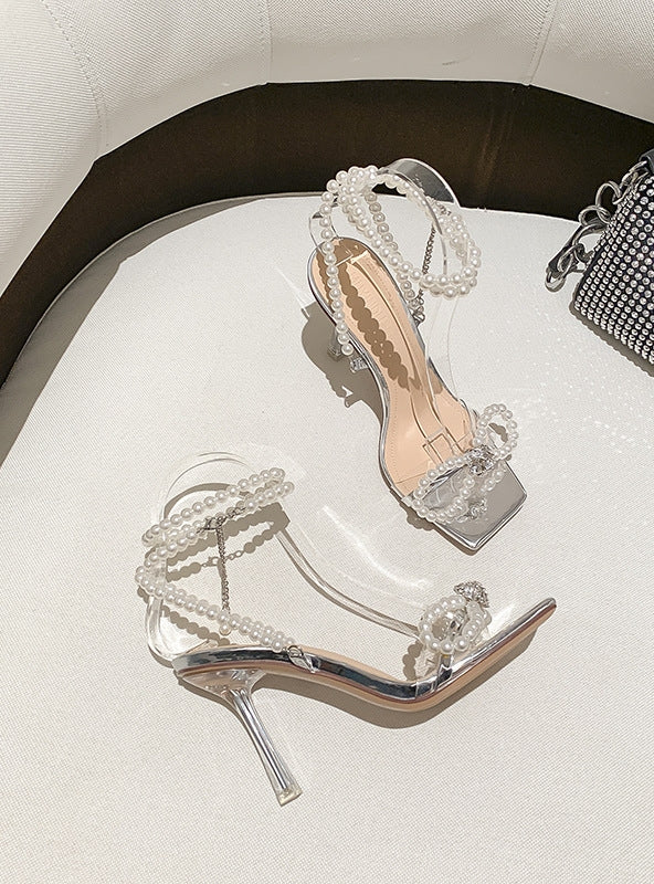 Pearl Bow Stiletto Heels Sandal