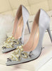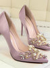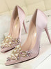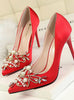 Rhinestone Crystal Shallow Fashion Faux Silk Satin Stiletto