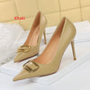 Shallow Pointed Metal Buckle Decorative Shoes