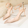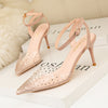 Transparent Rhinestone Pointed Thin Heels Sandals