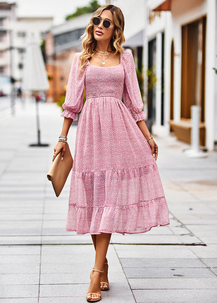 The romantic print dress showcases a dazzling block print in vivid hues of blue, with the floral dress stealing the spotlight. Featuring lace accents, tiered skirts, flared sleeves, and a flattering neckline, this stunning dress is perfect for summer gatherings, dinners, and events where you aim to make a lasting impression.