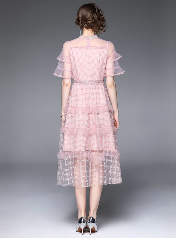 Heavy Embroidery Waist Lace Dress