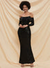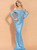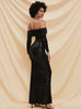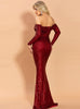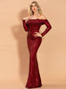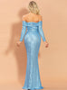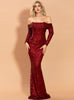 Off Shoulder Tube Top Long Sleeve Sequined Party Dress