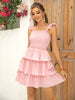 Pink Strap Ruffled Short Dress