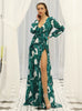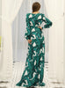 Printed Beach Skirt Long Sleeve Waist Strap Flounces Dress